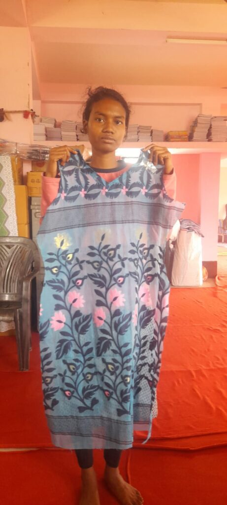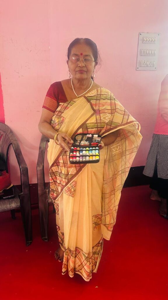 The 17 trained girls, presented Urjo with an album with miniatures of the items they have learnt to stitch and also a beautiful handmade card thanking Urjo for giving them an opportunity to learn a new skill which , if practiced, would help them to earn a living. It was a satisfying day for Urjo with the completion of the Project successfully.